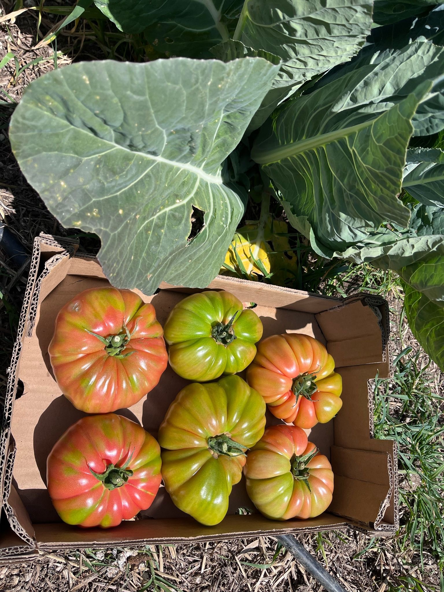 Grønlige, rødlige, pink, flotte farver. Den fantastiske spanske bøf tomat med sit meget specielle og fantastiske mønster indeni. De er fantastiske!