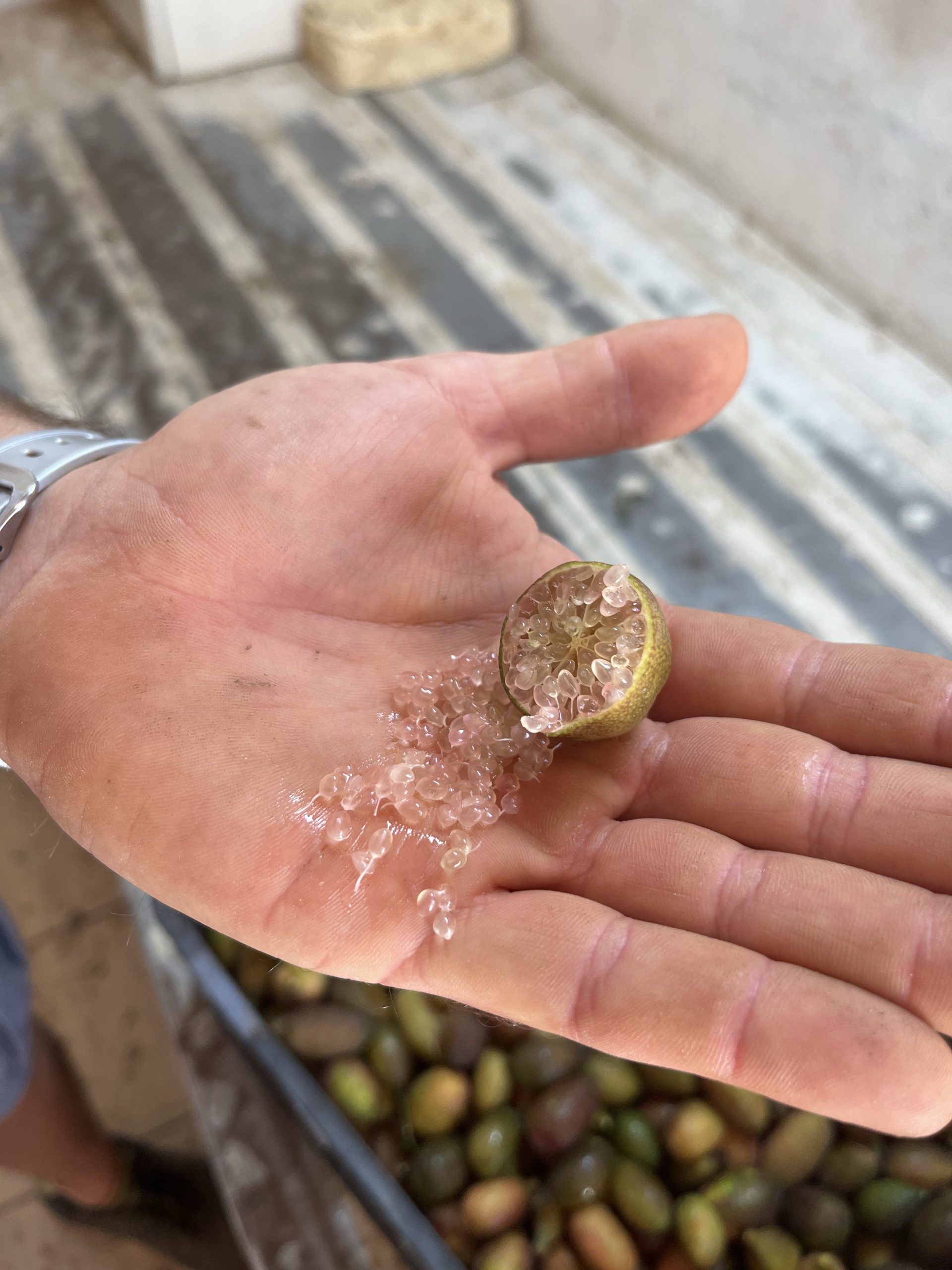En specialitet i butikken kan man vidst roligt sige. Vi har fået kontakt til Manolo, han har den mest fantastiske bondegård ikke langt fra os med blandt andet kaviar citroner. Det er en meget lille aromtisk citron som bruges til salater, fisk og pynt på maden.