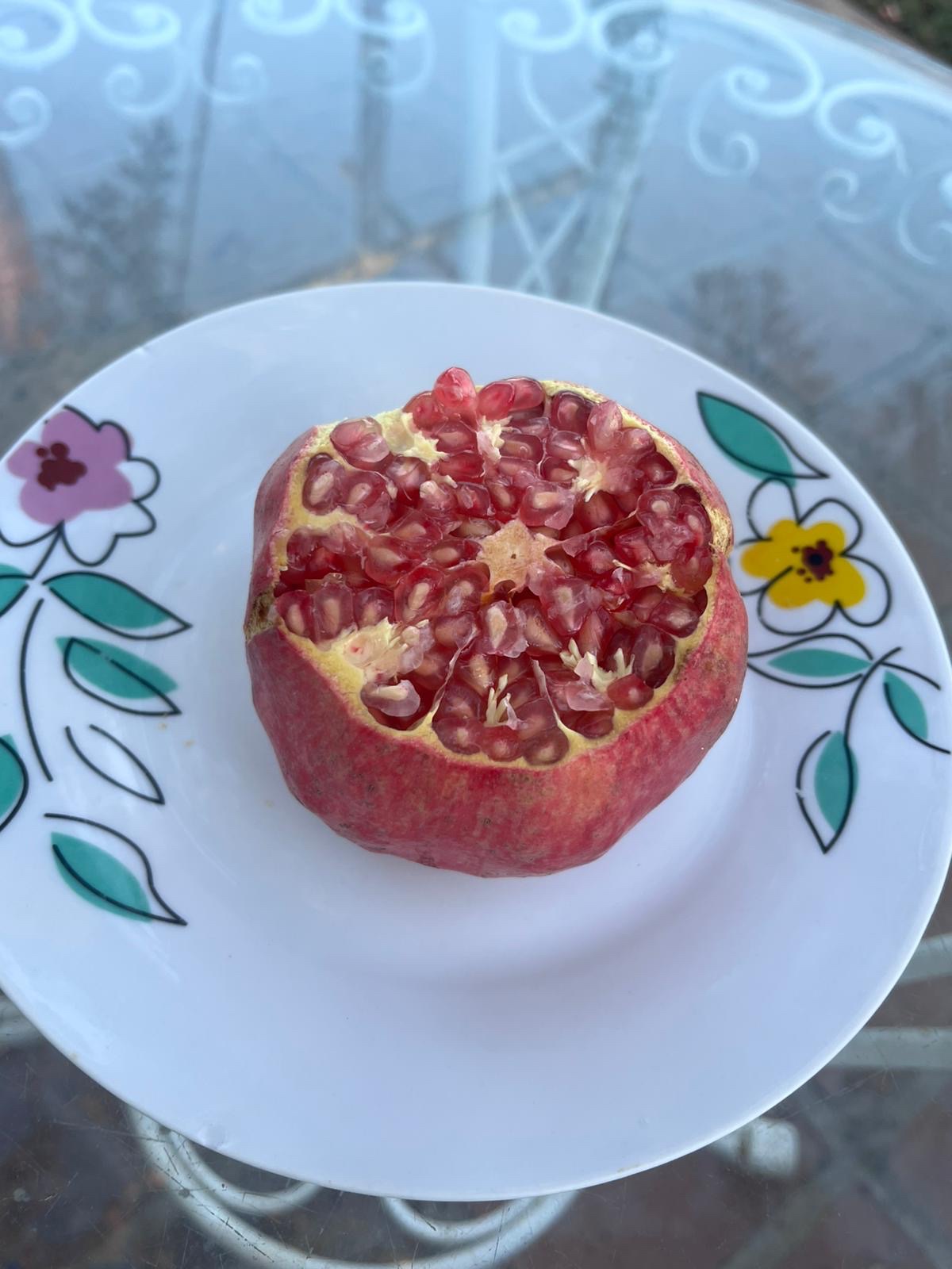 Der findes to slags granatæbler, jo rødere udenpå jo hvidere indeni samt ikke så søde, men de hvide udenopå ofte er de sødeste og rødeste, den omvendte verden! 🙂